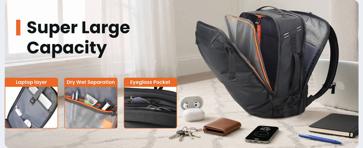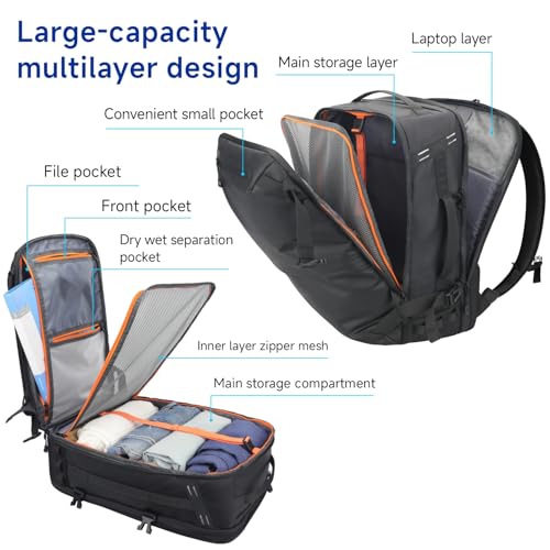 SWICKY Travel Backpack 40L,Rucksack for Men, Bag for Underseat Cabin Max Size, Water Resistant Large for Men and Women, Fits 17 Inch