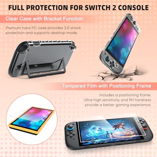 - 【All-Round Protection & Crystal Clear View】—Safeguard your Switch 2 with a full-coverage hard case and 9H hardness screen protectors (includes an alignment frame for easy, bubble-free installation). Complete the defense for Nintendo Switch 2 with 8 thumb grips and 5 dust plugs. Meanwhile, enjoy perfect viewing and sound with a 5-angle adjustable playstand and zero-latency wired earbuds. For Nintendo 3DS & 2DS Games