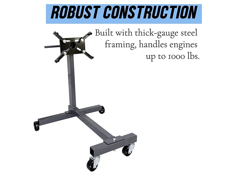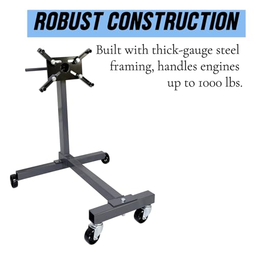 - Heavy-Duty Steel Construction: Built with thick-gauge steel framing for superior durability and stability, supports engines up to 1000 lbs with ease, ideal for repairs and maintenance work.
