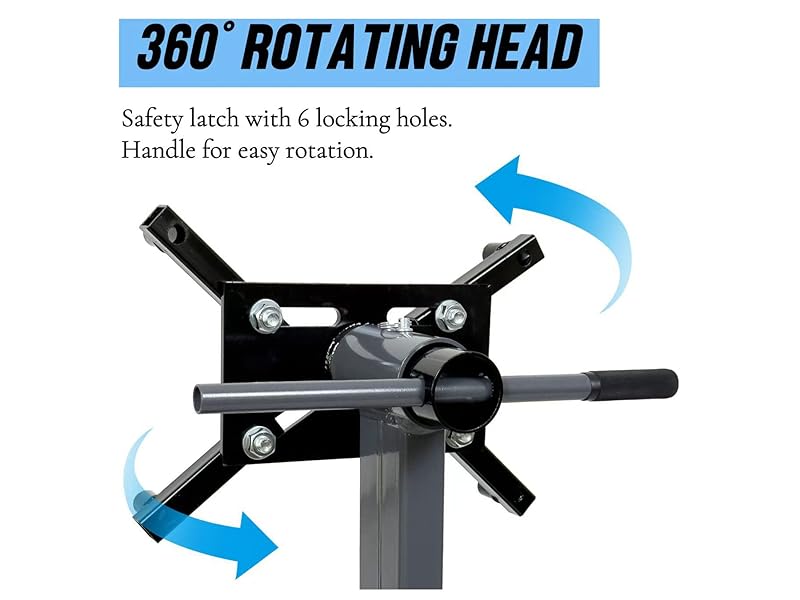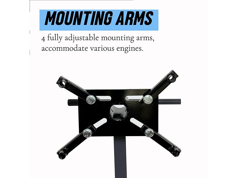 - Rotating Mounting Head: Features a 360 degree full-rotation head with a secure safety latch and 6 locking positions, allowing smooth and controlled engine positioning.
