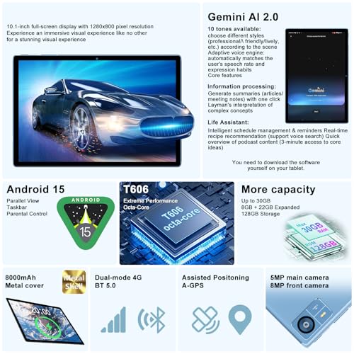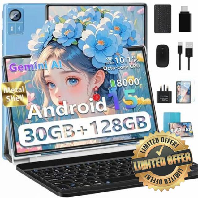 【Latest Android 15 System】The tablet is equipped with the latest Android 15 system, which is fast and offers great compatibility. The system fully protects users' privacy. You can customize desktop themes, text styles and App icons, and add widgets like clock, weather and calendar. Android 15 brings you new features such as multi-user, multi-window, split screen and parental control.