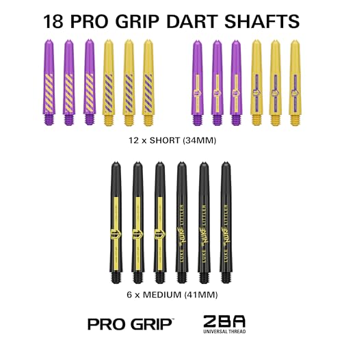 - PRO GRIP DART SHAFTS: Six Pro Grip shaft designs are included, allowing you to customise your dart setup to stand out on the oche. Crafted from a durable nylon material and fitted with a universal 2BA thread for a secure and stable fit.