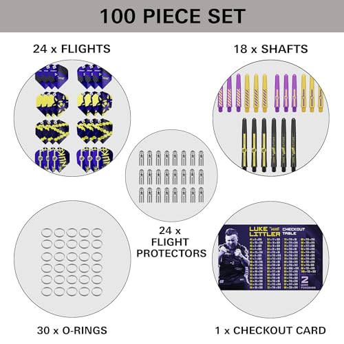 - LUKE LITTLER FULL DART SET & ACCESSORIES: This 100-piece dart set includes everything you need to get started on the Oche, designed in collaboration with Luke “The Nuke” Littler. He is the World’s youngest-ever World Darts champion, winning the 2025 PDC World Darts Championship at just 17 years old. The perfect gift for fans and dart enthusiasts alike.