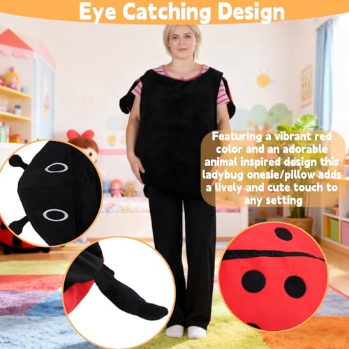 [Eye Catching Design] Featuring a vibrant red color and an adorable animal inspired design this ladybug onesie/pillow adds a lively and cute touch to any setting. lady comfy unique appearance makes it a standout piece for home decor or festive occasions ensuring you grab attention and spread joy wherever you go.