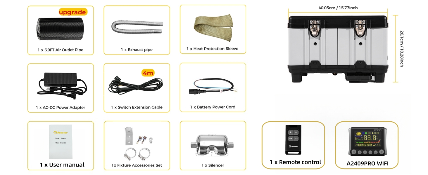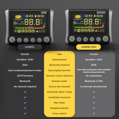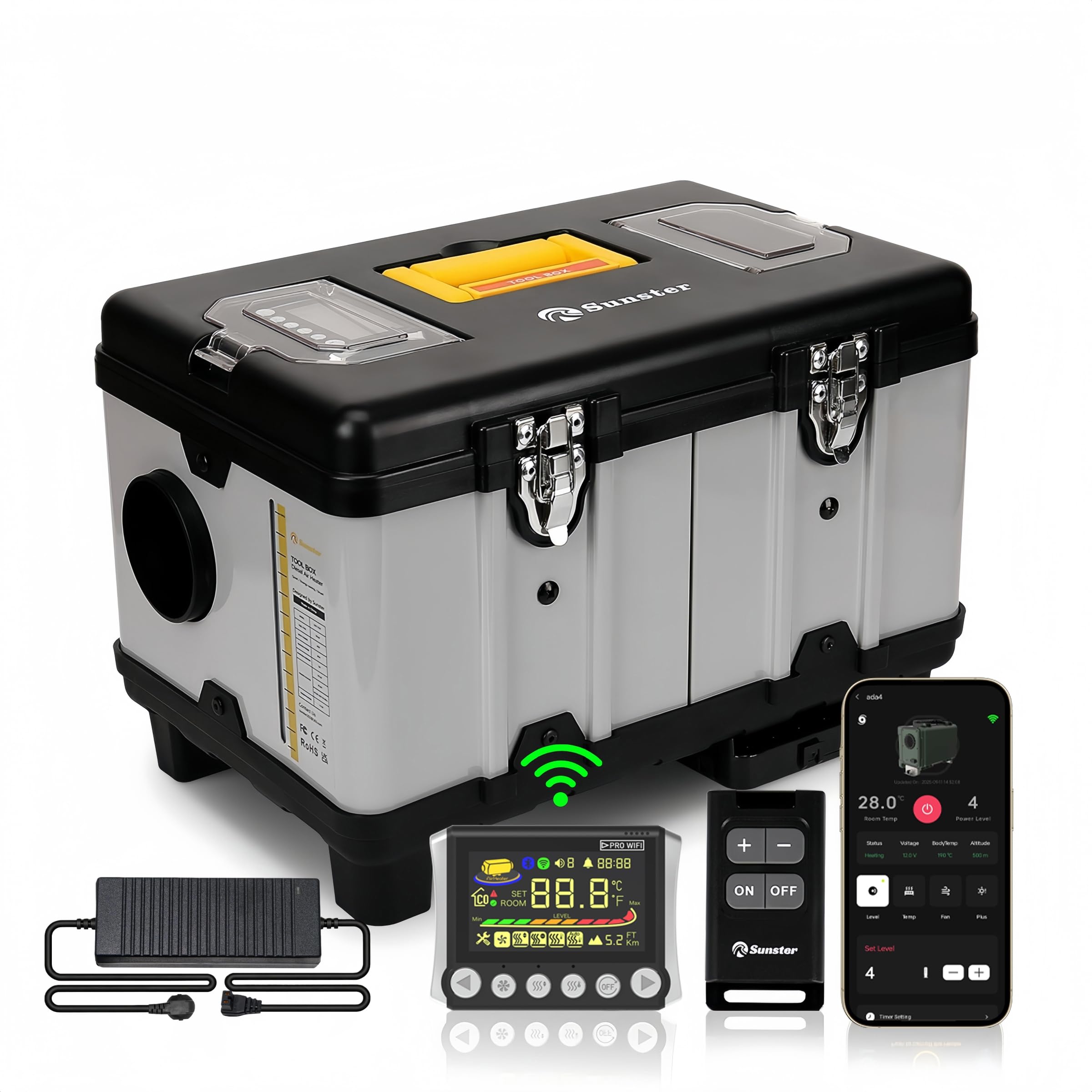 【Advanced Diesel Heater with Wi-Fi control】Through the 'Sunster' app, as long as your parking heater is connected to WIFI , you can manage it from anywhere in the country. Very suitable for families or teams traveling
