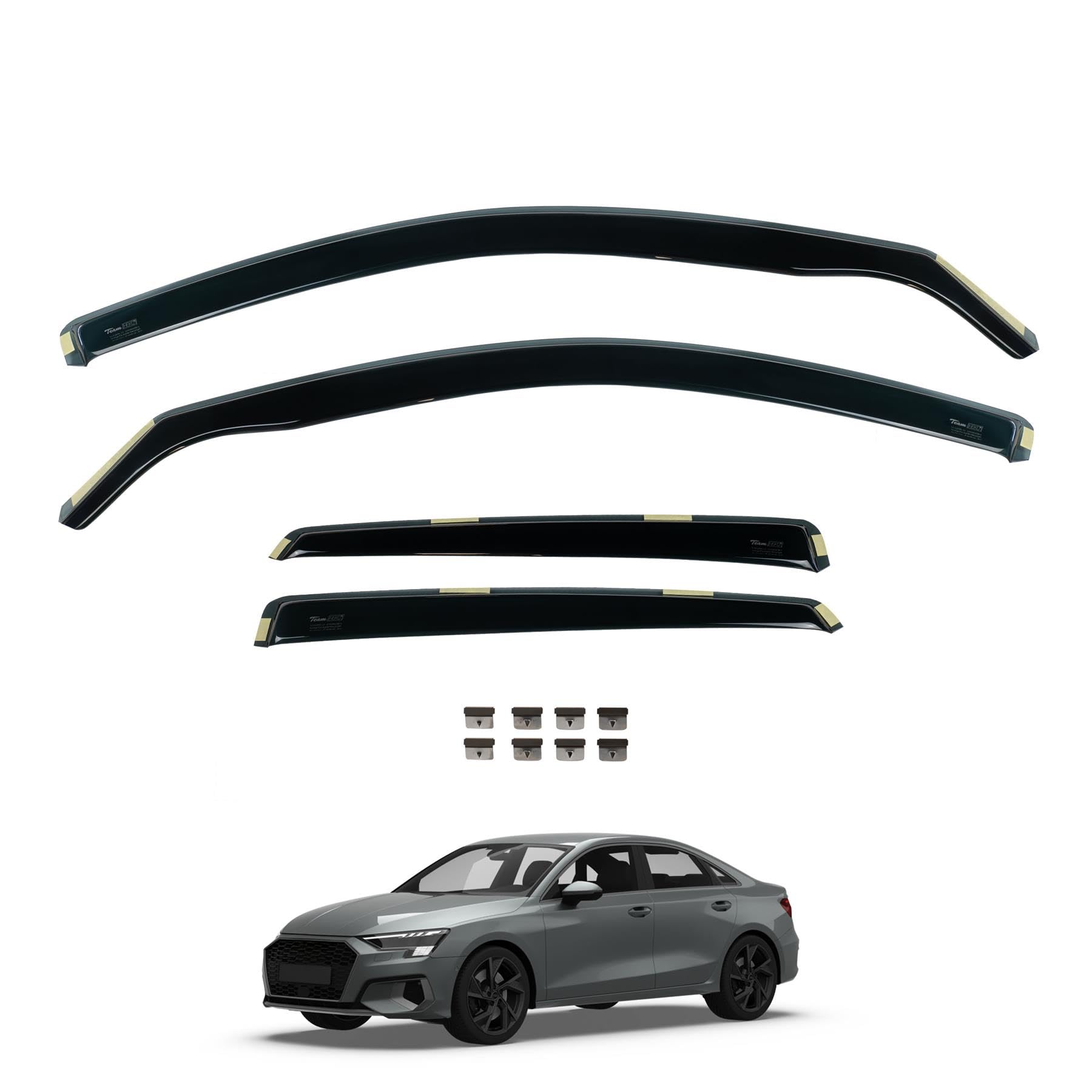 Team HEKO Wind Deflectors Audi A3 2020+ Sportback Compatible Full Set of Window Deflectors Accessories Smoked UV & Scratch Resistant Acrylic In-Channel Fitting Air Ventilation & Rain Protectio