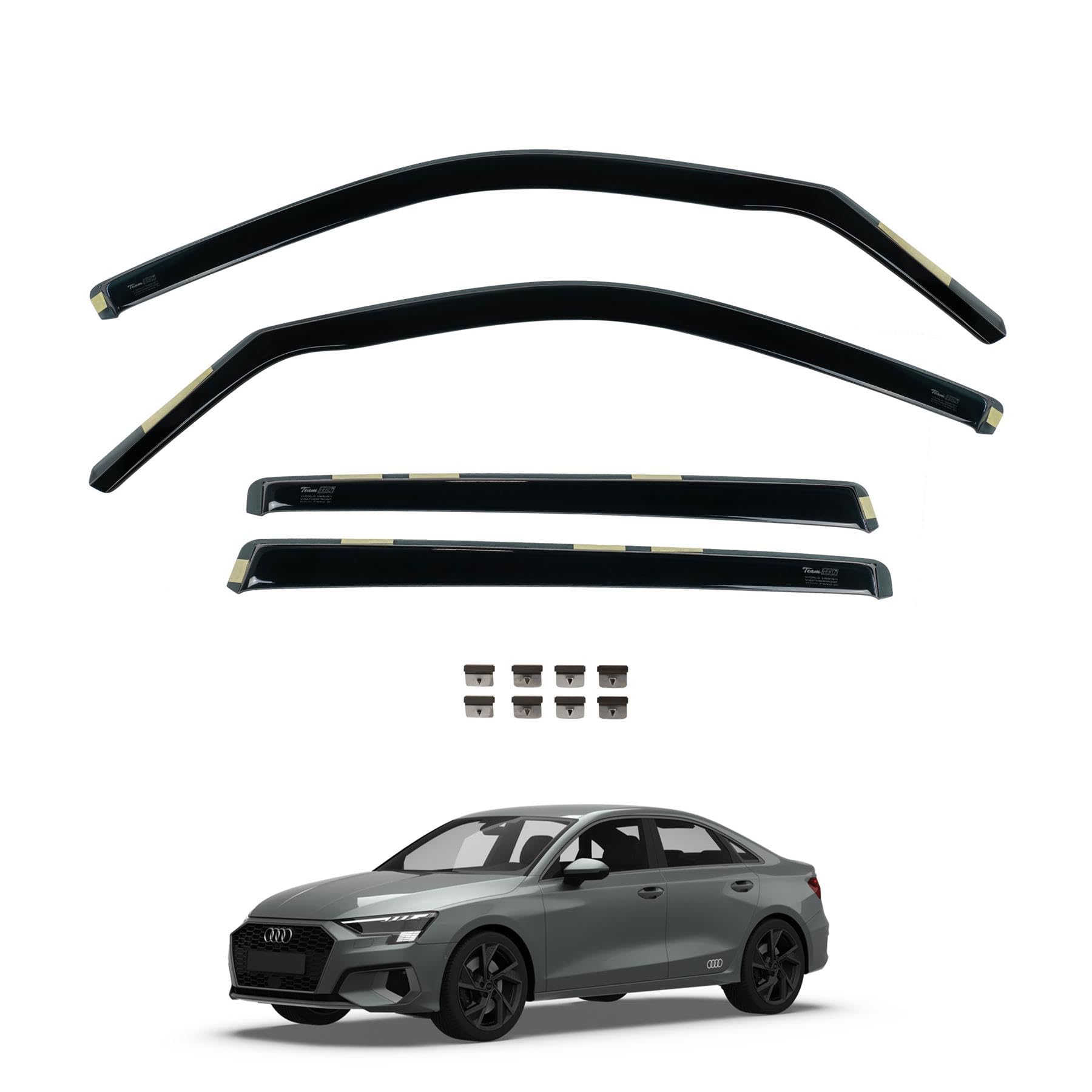 Team HEKO Wind Deflectors for Audi A3 2020+ [SALOON] Front and Rear Set of Window Deflectors, Accessories UV & Scratch Resistant Acrylic In-Channel Fitting – Air Ventilation & Rain Protectio