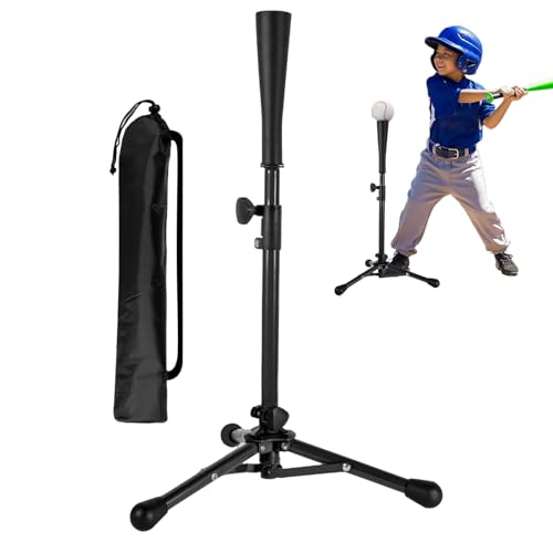 This adjustable tee ball stand is designed for children ages 3-8, providing a sturdy tripod base for batting practice in baseball or softball training it comes with a convenient carry bag for portability, making it easy to use indoors, outdoors, at home, or during youth coaching the adjustable height accommodates growing children, helping them develop proper swing mechanics, hand-eye coordination, and timing the durable construction ensures stability during repeated use, and the portable design allows practice anywhere, supporting young people athletes in the development of skills and confidence building