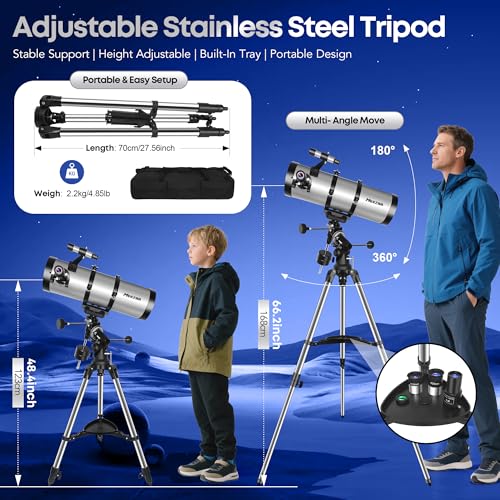 Telescope, 150EQ Reflector Telescope for Adults Astronomy Beginners, Professional Astronomical Telescopes with Equatorial Mount, 2X Barlow Lens, Phone Adapter, Tripod, Moon Filter and Carry Bag