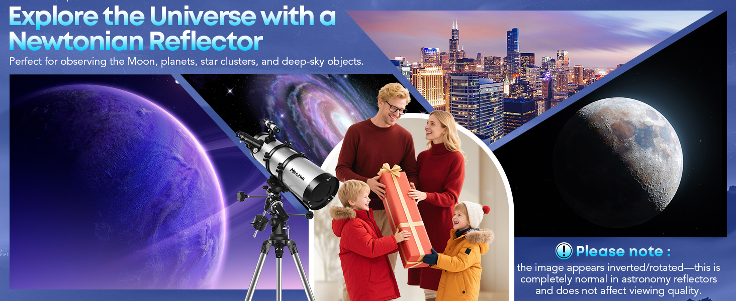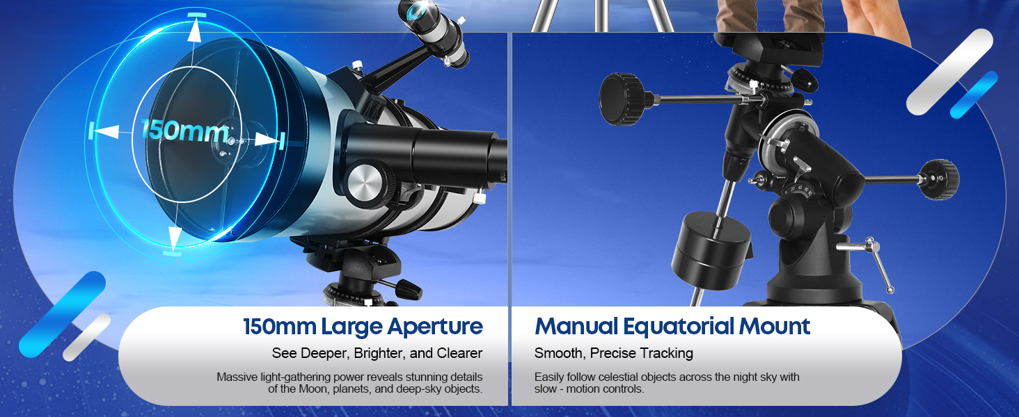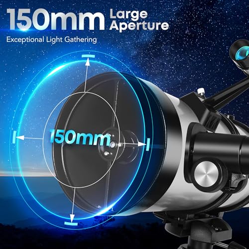 Powerful 150mm Large Aperture: With a 650 mm focal length and 150 mm aperture, this reflector telescope captures more light for brighter, sharper views of the Moon, planets, nebulae, and galaxies. Perfect telescope for adult beginners and astronomy enthusiasts who want to explore deep-sky objects and experience breathtaking cosmic details