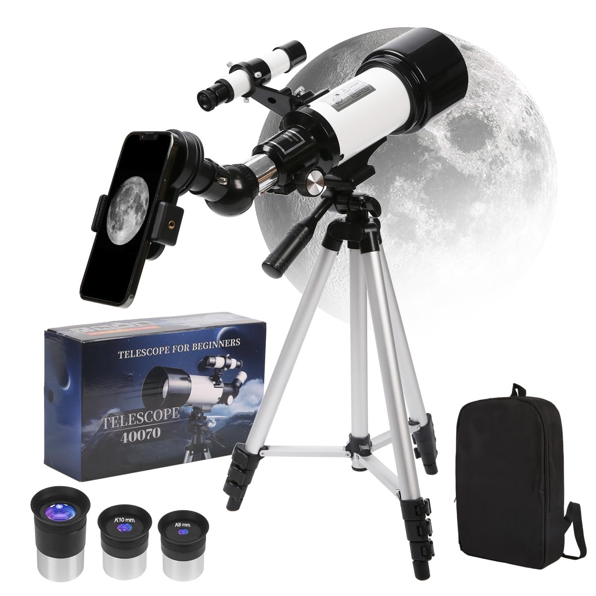Telescope for Adults Astronomy,70mm Aperture 400mm AZ Mount Astronomical Refractor Scope Includes Three Eyepieces(20-67x),Portable Beginner Telescope with Adjustable Tripod,Phone Holder&Backpack