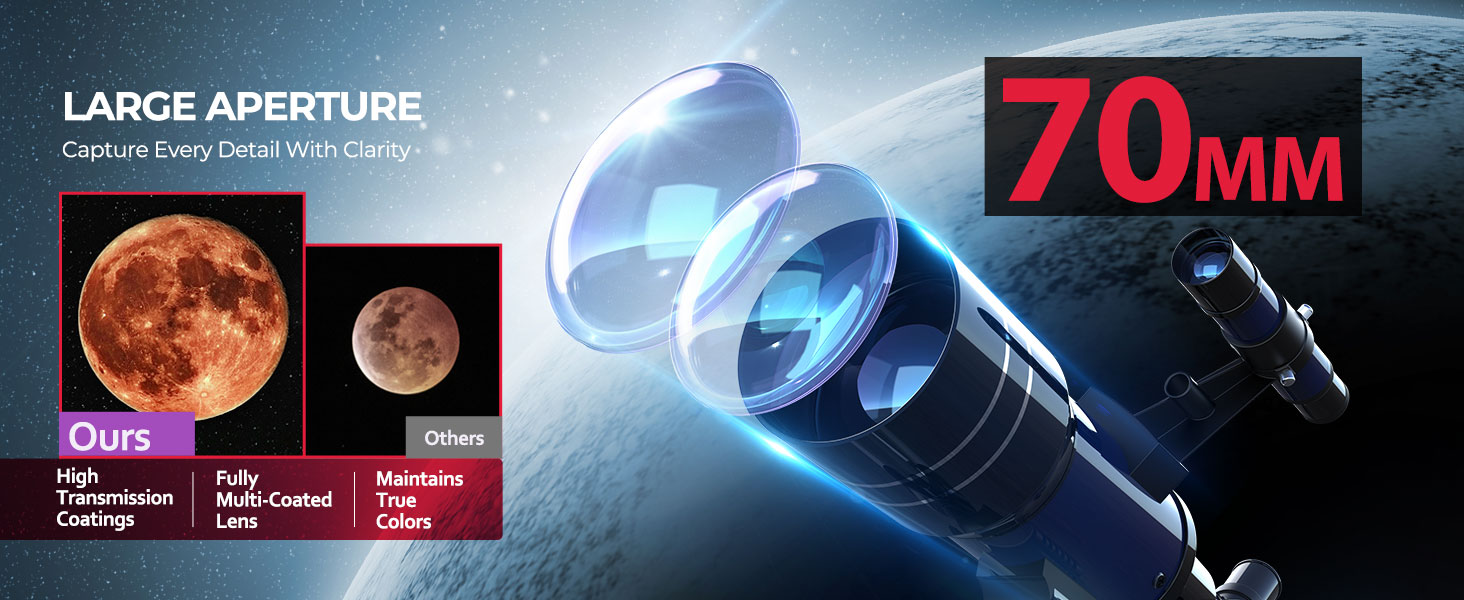 【70mm Aperture for Bright & Sharp Views】Equipped with a 70mm large objective lens, It allows them to observe the Moon and bright planets like Jupiter and Saturn, and is also great for daytime wildlife viewing. Inspire a love for astronomy and science, encourage exploration of nature, and offer a meaningful break from screen time.