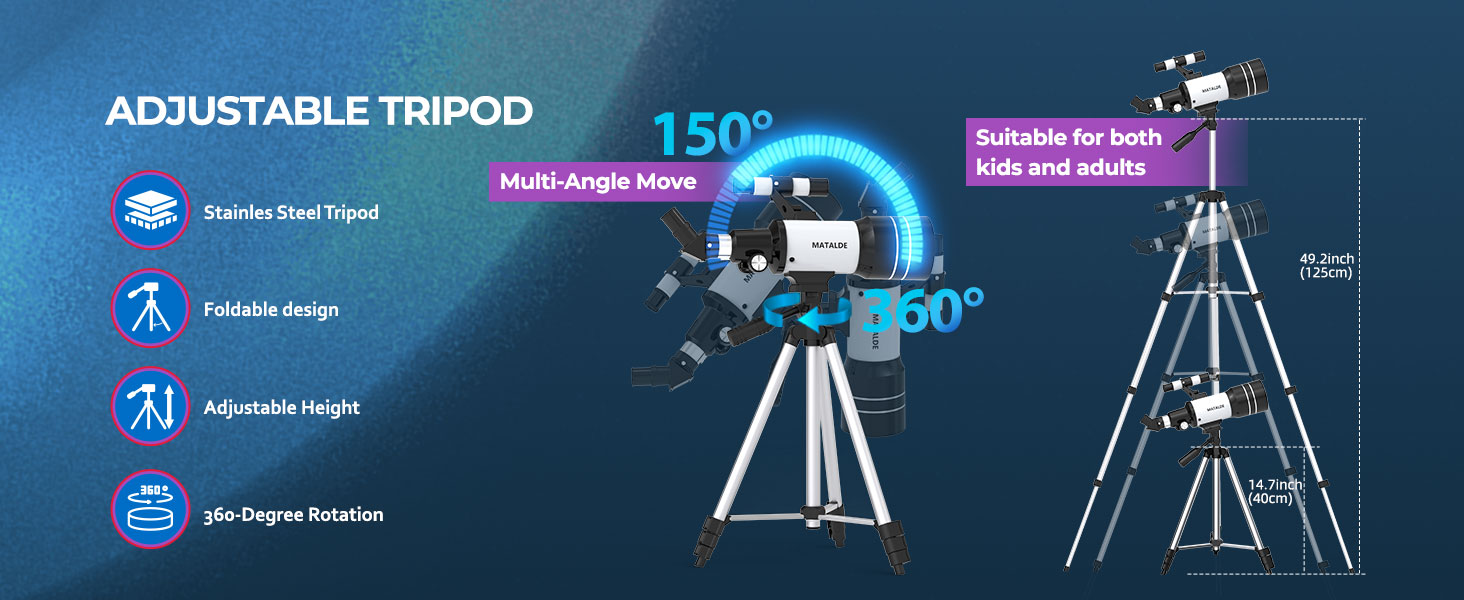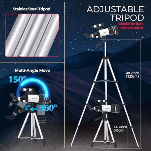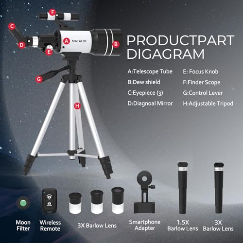 【Complete All-in-One Kit】- Everything You Need to Start,We include every accessory a beginner astronomer requires: finderscope for easy targeting, moon filter to reduce glare, carrying bag for travel, and multiple eyepieces for versatile viewing. The MATALDE telescope is the ultimate educational gift for kids, teens, and adults eager to explore the wonders of space.