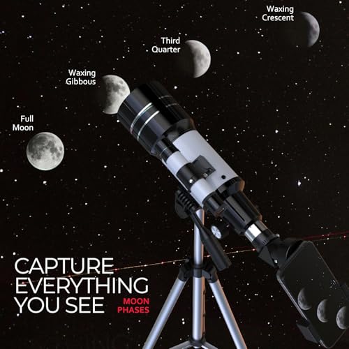 【Astrophotography Made Easy】- Capture & Share Your Discoveries,Turn your smartphone into a cosmic camera! The included smartphone adapter and wireless remote allow you to easily attach your phone to the eyepiece and take stunning pictures and videos of the moon and planets. Share your astronomical discoveries with friends and family with just a click.