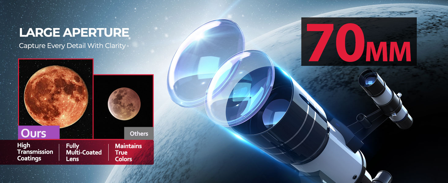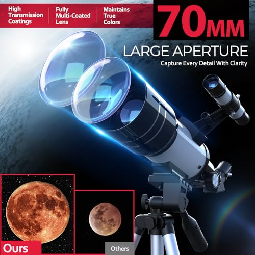 【70mm Aperture for Bright & Sharp Views】Equipped with a 70mm large objective lens, It allows them to observe the Moon and bright planets like Jupiter and Saturn, and is also great for daytime wildlife viewing. Inspire a love for astronomy and science, encourage exploration of nature, and offer a meaningful break from screen time.