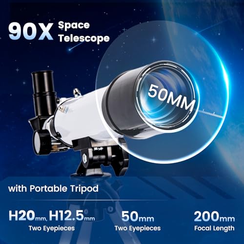Telescope for Kids Adults Beginners 50mm Aperture 360mm Two Eyepieces Optics Focus Length Astronomical Refractor Travel Portable Telescope with Finder Scope Tripod Bag High-Definition Outdoo