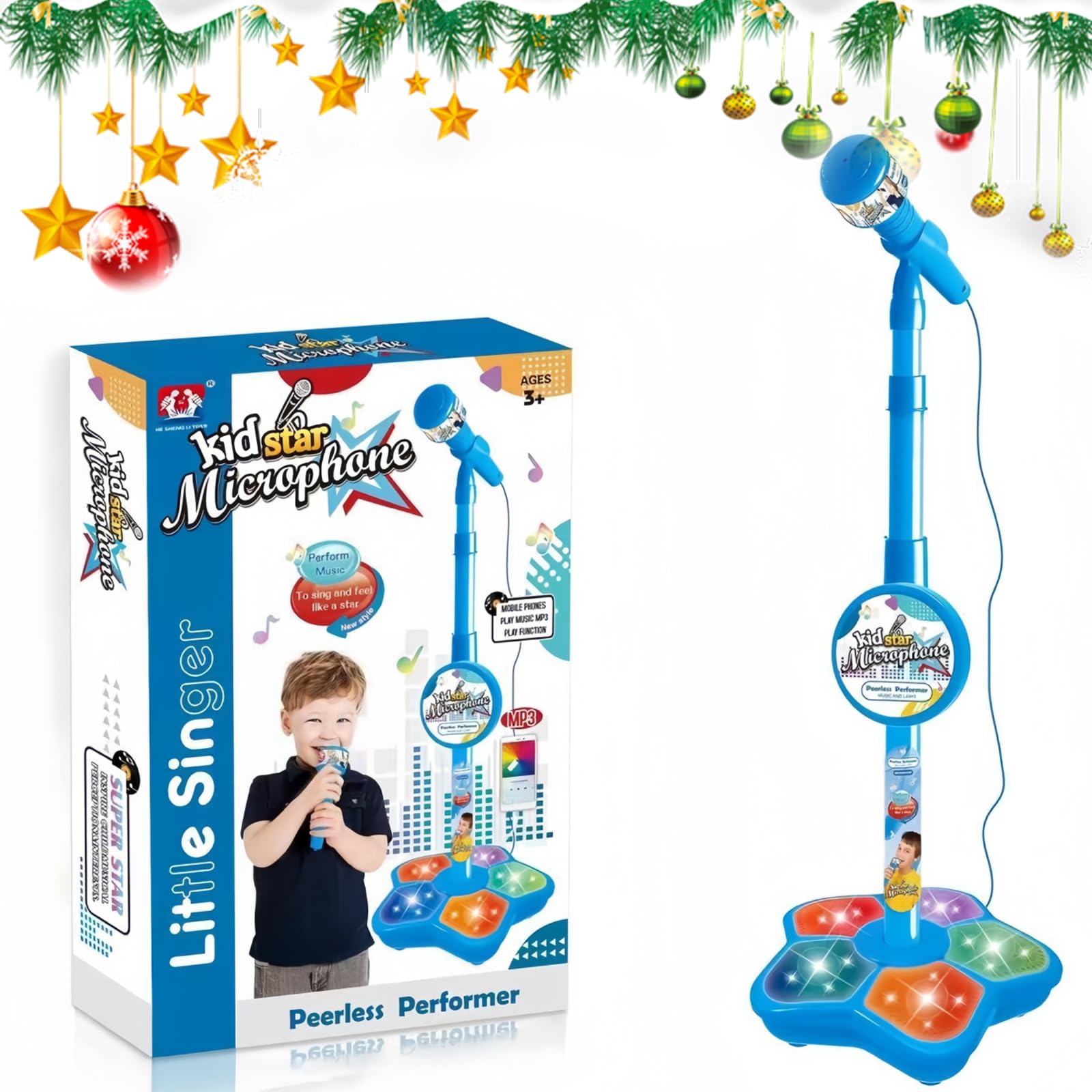 The Microphone Toy for Kids with Stand,2026 New Kids Microphone with Adjustable Stand, Karaoke Microphone with Speaker & Colorful LED, for Singing Fun Christmas (blue)
