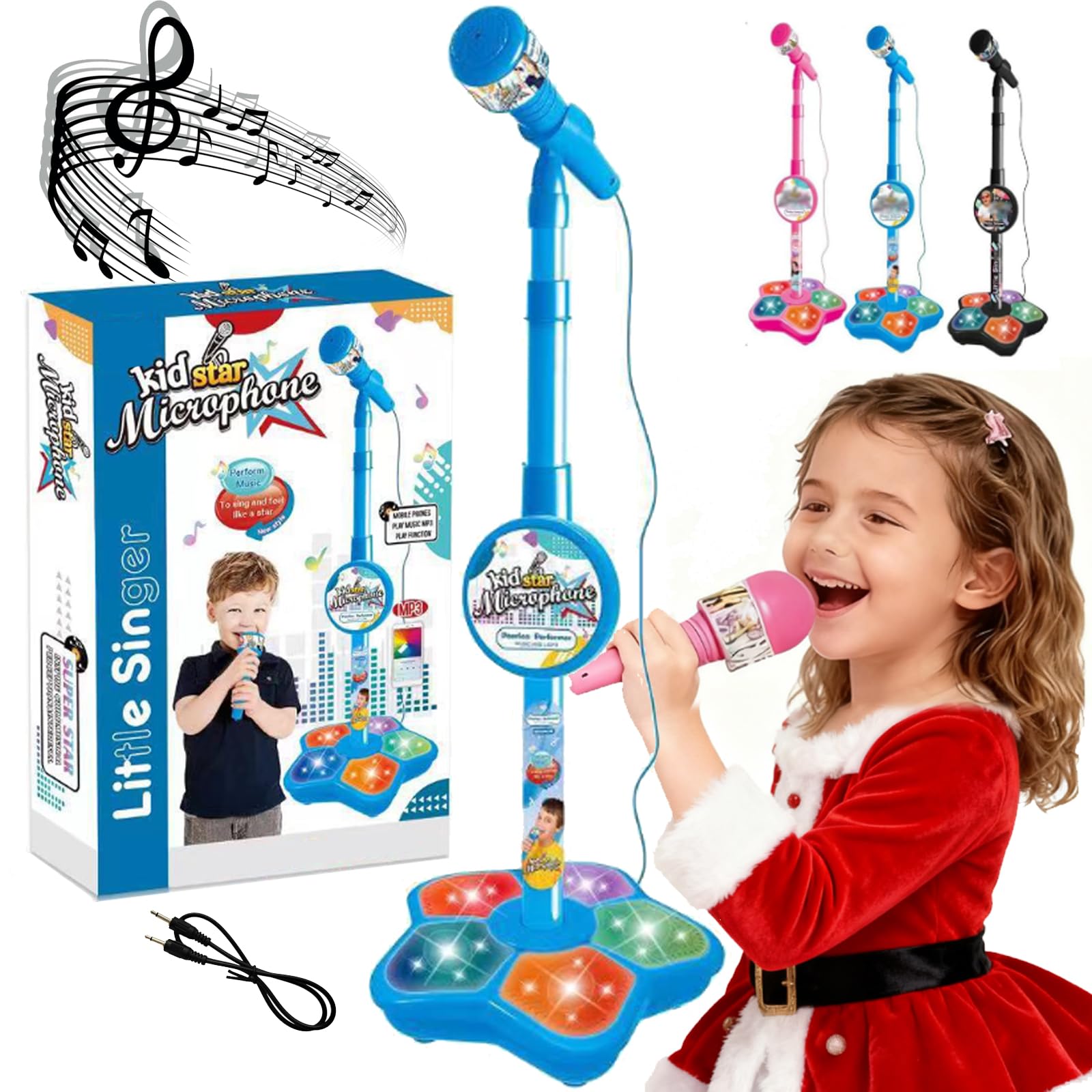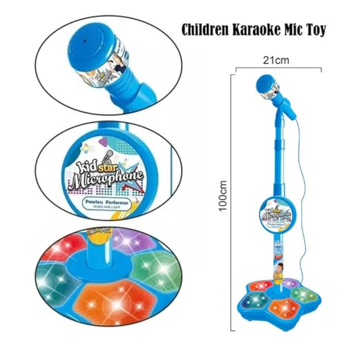 The Microphone Toy, New Upgrade Karaoke Machine with Music & Flashing Stage Lights, Microphone for Singing with Adjustable Stand, The Ultimate Birthday Gift for Girls and Boys (Blue)