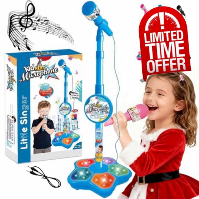 The Microphone Toy, New Upgrade Karaoke Machine with Music & Flashing Stage Lights, Microphone for Singing with Adjustable Stand, The Ultimate Birthday Gift for Girls and Boys (Blue)