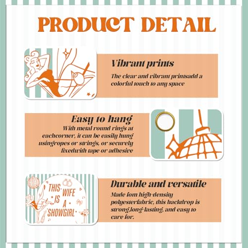 Wide Applications: This backdrop banner suitable for showgirl themed bachelorette party, and other parties, suitable for indoor and outdoor use, and it is also very suitable for your party as a background cloth for taking pictures! You can also hang it on the walls, dessert table, branches, gardens, courtyards and other places you want to decorate
