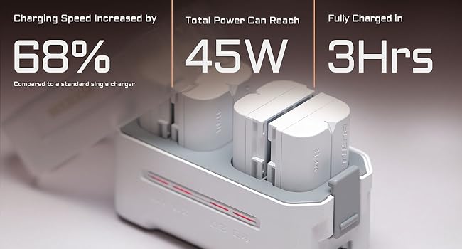 - USB-C FAST CHARGING Provides maximum 45W Power to Charge Four Batteries in 3 Hours. (Must use 45W+ PD Charger & compatible cable for high speeds)