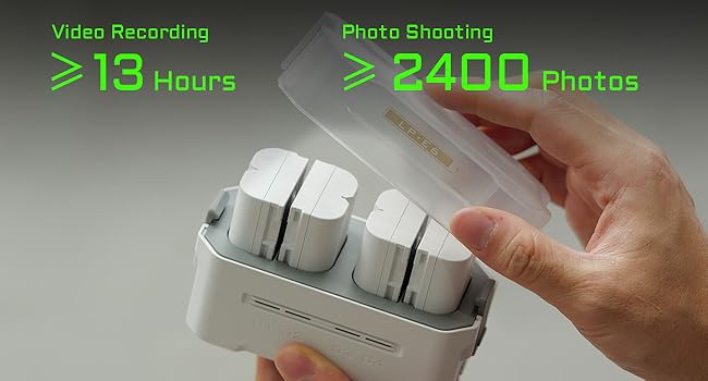 Just one compact battery case supports recording for ≥13 hours and shooting ≥2400 photos.