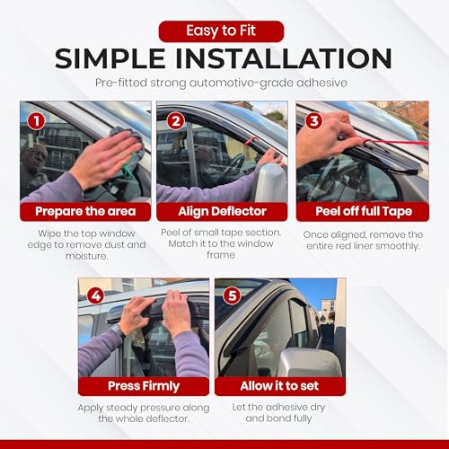 To Fit: Ford Transit Custom 2013 to 2023 Wind Deflectors Window Visors – 2-Piece External Fit Set, Tinted, Premium Stick-On Deflectors for Driver & Passenger, Reduce Wind Noise