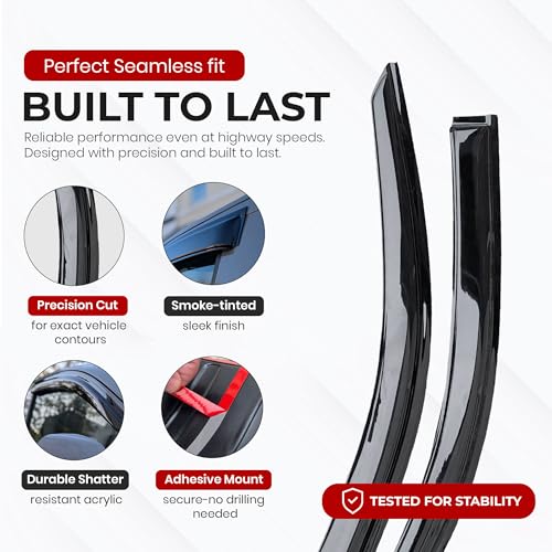 To Fit: Ford Transit Custom 2023+ Wind Deflectors & VW Transporter T7 (2025+) Window Visors – 2-Piece External Fit Set, Tinted, Premium Stick-On Deflectors for Driver & Passenger, Reduce Wind Noise