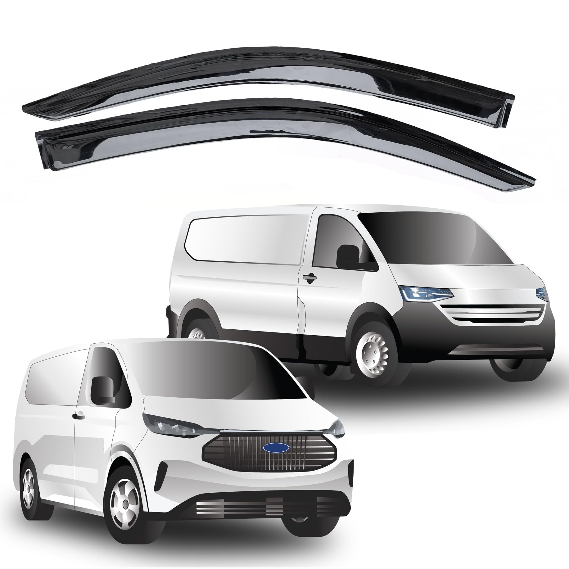 - PREMIUM WIND DEFLECTORS FOR: Ford Transit Custom MK 2 (2023 Onwards) & Volkswagen Transporter T7 (2025 Onwards). Perfect fit for 2023+ Transit Custom and Volkswagen Transporter T7 (2025+) – precision-shaped 2-piece set for driver and passenger sides ensures a clean, OEM-style finish.