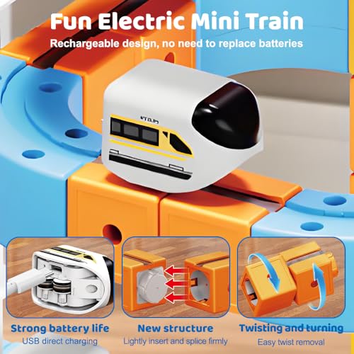 【USB Rechargeable Train】This amazing track cube train set comes with a high-capacity rechargeable battery, allowing the train to glide quickly on the track for 2-3 hours without the need for frequent battery changes or recharging, providing players with an immersive gaming experience.