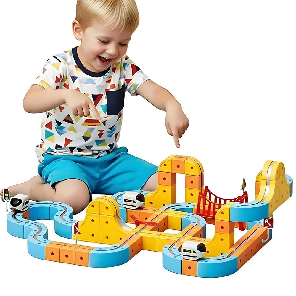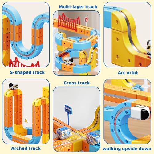 【Limitless Creativity】Fostering STEM Thinking: Through DIY cube tracks and components, children can create an infinite number of track shapes, combining science, technology, engineering, and mathematics (STEM) knowledge with play, building early STEM cognitive abilities in children.