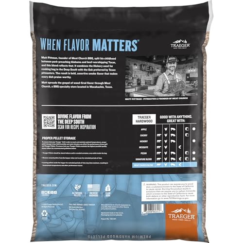 Traeger Grills Meat Church Blend 100% All-Natural Wood Pellets for Smokers and Pellet Grills, BBQ, Bake, Roast, 18 lb. Bag