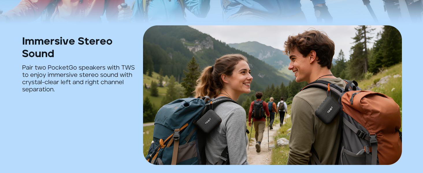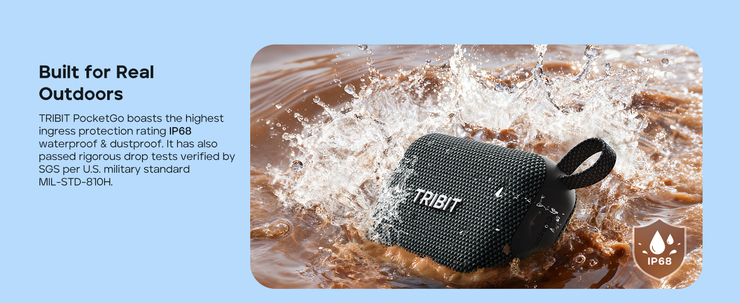 Tribit PocketGo Portable Wireless Bluetooth Speaker with 7W Stereo Sound, IP68 Waterproof Dustproof, 20H Playtime, Custom EQ, BT6.0 & TWS Pairing, Supports TF Card, Ideal for Travel, Outdoor, Gifts