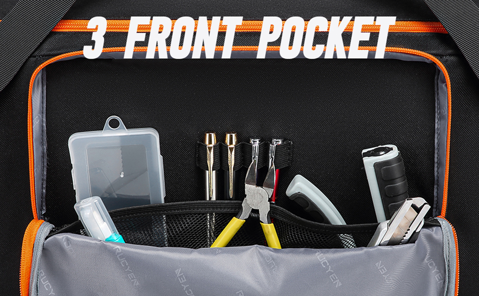 - Multiple pockets: There is a large zipper pocket on the front side, which can hold documents and other items. There are two snap pockets on both sides, which can hold battery chargers and other tools. It is more convenient to store all items and is a good helper for your work and travel