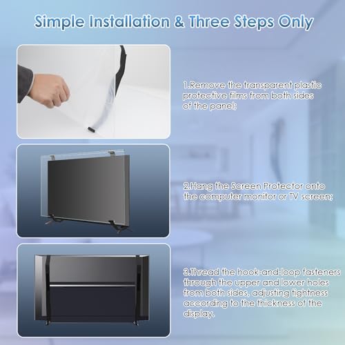 - 【Hassle-Free Installation and Maintenance】Designed for ease of use, the 32 Inch TV screen protector includes two secure straps and a protruding top edge for quick and firm placement above your TV. Installation requires no technical expertise, and maintenance is equally simple—just wipe the protector with a soft cloth to keep it spotless. With the TV protector screen, convenience meets functionality.