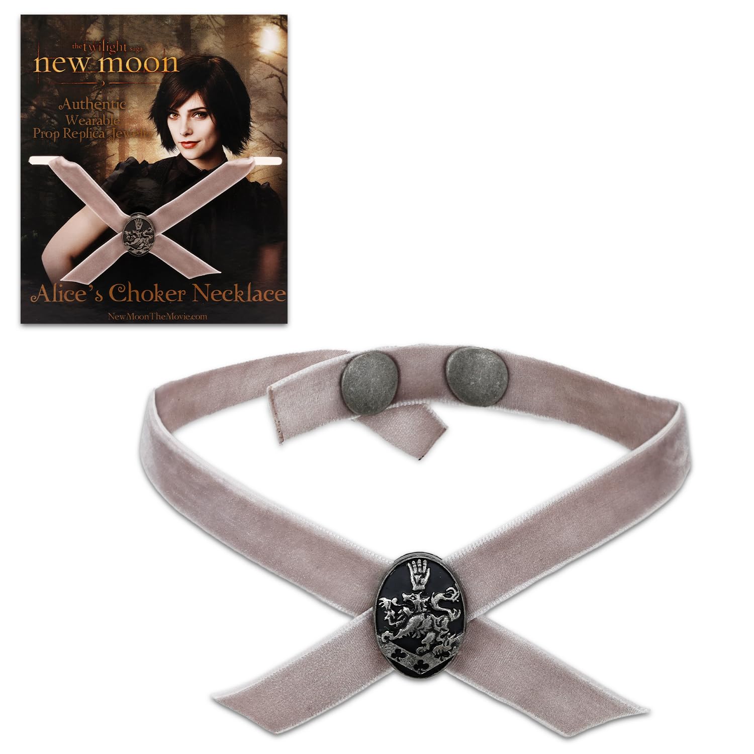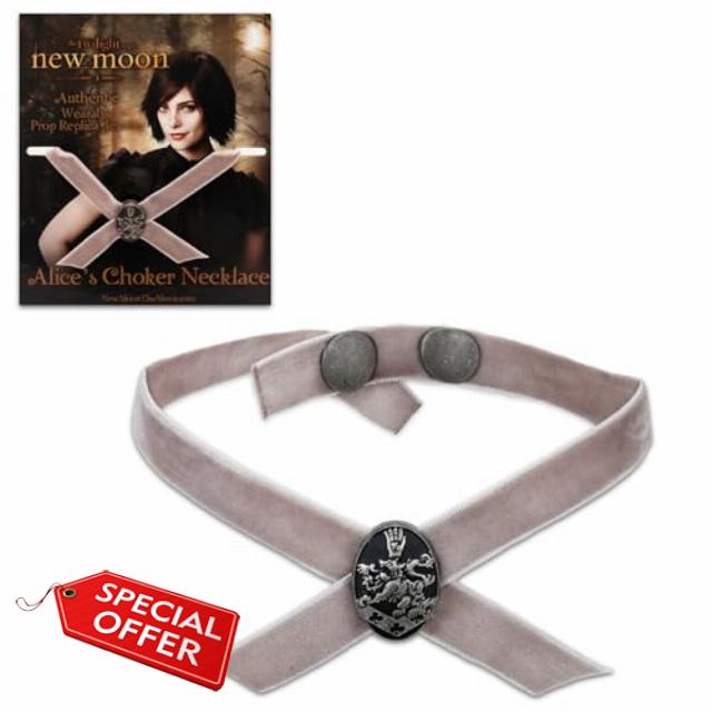 Twilight Saga New Moon Jewelry Set for Girls – Dress Up Accessories with Alice Cullen Choker Necklace Costume Replica | Twilight Alice Cullen Necklace Prop. This Twilight dress up accessories set includes 1 replica of Alice Cullen’s choker necklace featurng the Cullen family crest from the Twilight Saga New Moon movie. Great for Twilight fans, this Alice Cullen jewelry set is great to use as part of a costume, party favors, goodie bag fillers, stocking stuffers, part of a gift basket, and more. Sure to be a hit with Twilight fans, this Twilight Alice jewelry piece will make a great addition to any dress up parties and will allow you to look just like your favorite Twilight character. Officially licensed Twilight jewelry choker necklace replica.