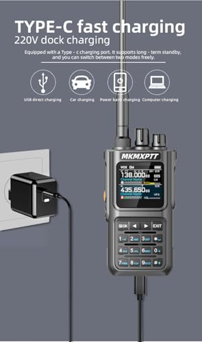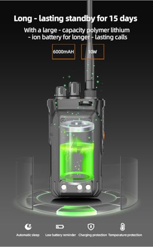 Supports Bluetooth connection to mobile phone , standby for 15 days, USB charging, 10W power, 6000mAh battery, suitable for multiple scenarios. Type-C fast charging with multiple charging methods, providing clear communication in the UHF frequency band in urban areas; Outdoor, the VHF frequency band extends your communication range. The PC material body is impact resistant, wear-resistant, anti drop, dustproof, and can be used stably even in complex environments.