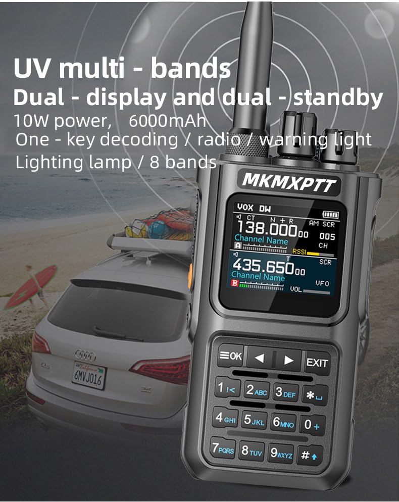 Two-Way Radio, 10W Dual Display, 8-Band UHF/VHF, 6000mAh