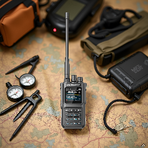 Two-Way Radio, 10W Dual Display, 8-Band UHF/VHF, 6000mAh Battery, Digital Walkie Talkie with GPS Navigation, Black (BLACK)