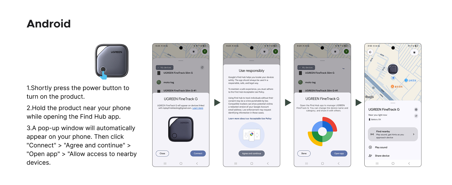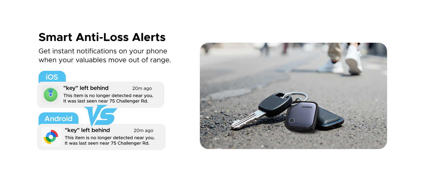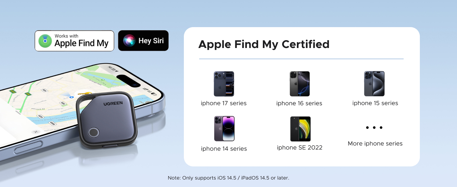 Dual System Certification: The UGREEN FineTrack Duo is a dual-system tracker certified by both Apple Find My and Google Find Hub, compatible with both iOS (14.5 and above) and Android (9.0 and above). Due to system limitations, it cannot connect to both systems simultaneously and requires unpairing before reconnecting