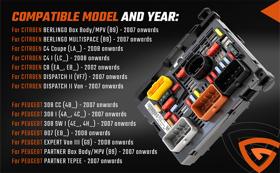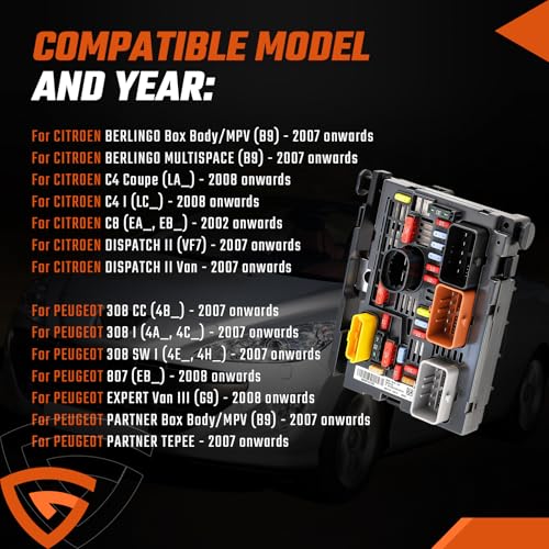 【Compatible Model and Year】Under Bonnet Fuse Box Fit For CITROEN BERLINGO Box Body/MPV (B9) – 2007 onwards; For CITROEN BERLINGO MULTISPACE (B9) – 2007 onwards; For CITROEN C4 Coupe (LA_) – 2008 onwards; For CITROEN C4 I (LC_) – 2008 onwards; For CITROEN C8 (EA_, EB_) – 2002 onwards; For CITROEN DISPATCH II (VF7) – 2007 onwards; For CITROEN DISPATCH II Van – 2007 onwards; For PEUGEOT 308 CC (4B_) – 2007 onwards; For PEUGEOT 308 I (4A_, 4C_) – 2007 onwards; For PEUGEOT 308 SW I (4E_, 4H_) – 2007 onwards; For PEUGEOT 807 (EB_) – 2008 onwards; For PEUGEOT EXPERT Van III (G9) – 2008 onwards; For PEUGEOT PARTNER Box Body/MPV (B9) – 2007 onwards; For PEUGEOT PARTNER TEPEE – 2007 onwards
