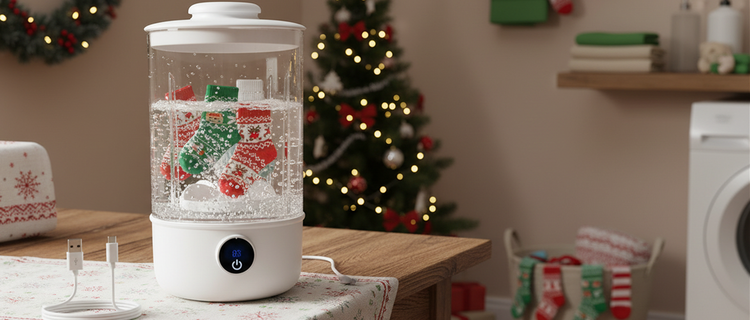 【Cordless & Rechargeable】 No power outlet? No problem. This mini washing machine features a high-capacity rechargeable battery that delivers long-lasting power—no need to stay plugged in, giving you total flexibility wherever you go.