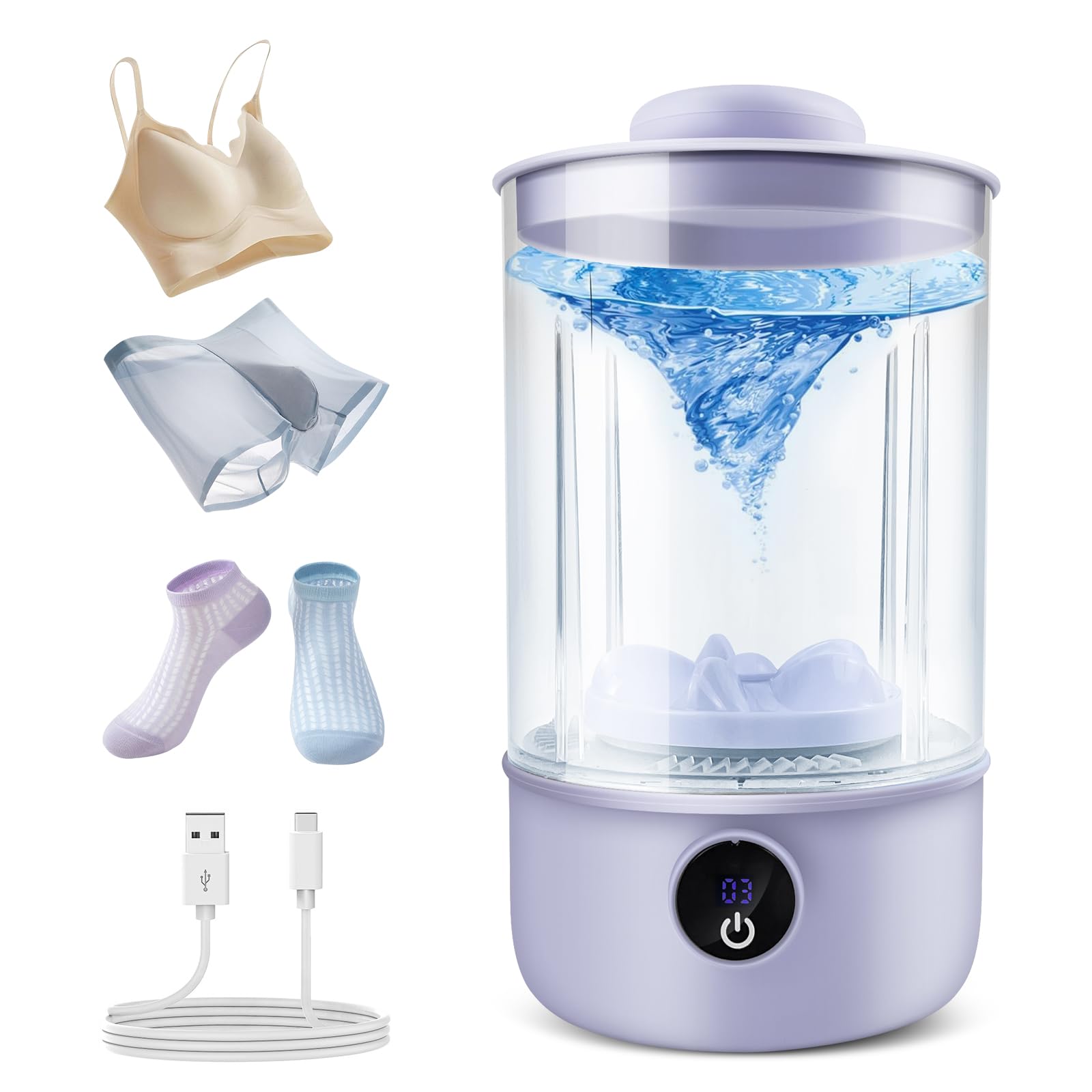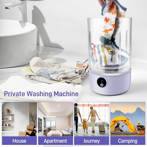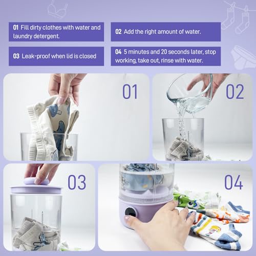 Underwear Washing Machine | Rechargeable 1L Portable Mini Washer | Deep Cleaning of Socks, Baby Clothes, Small Loads | Lightweight and Compact for Apartment, Dorm, Hotel, Travel, RV (Purple)