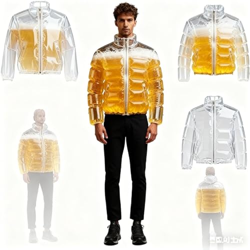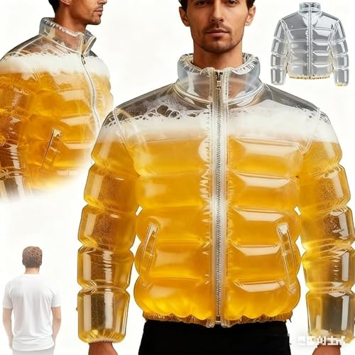 - Transparent & Color-Changing Design Crafted from food-safe transparent material, the jacket comes alive with color as you fill it with different beverages! Whether it’s light beer, dark stout, or a vibrant cocktail, each drink creates a unique look that helps you stand out in any crowd.
