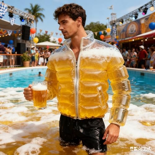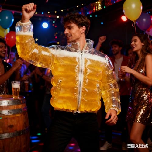 - Wearable Interactive Beer Container This jacket doubles as a portable beer holder—fill it with your go-to brew, attach the included straws, and sip directly on the go! Perfect for parties, festivals, or any social gathering where you want to keep your drink handy.