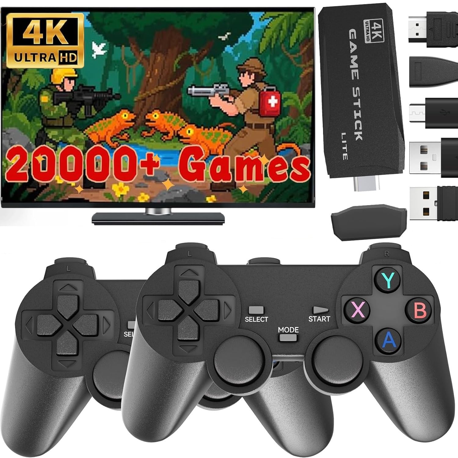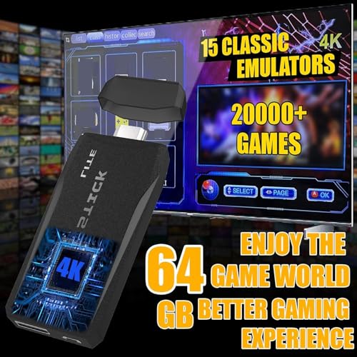 - 【Plug & Play Retro Games Console】Simply plug this retro game stick into your TV's HDMI port and a USB port for power. Switch the TV source to HDMI, and you're ready to dive into 20,000+ classic games instantly. No complicated setup needed!