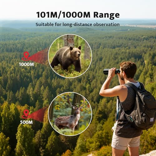 【Wide Angle for Immersive Viewing】 With an impressive 101m/1000m wide field of view, these bird watching binoculars for adults allow you to easily follow fast-moving subjects. Ideal for birdwatching, hunting, sports events, or enjoying ocean views, the wide-angle design lets you scan large landscapes like coastlines, valleys, and scenic overlooks with ease. Enjoy a fully immersive panoramic viewing experience—perfect travel binoculars for adults who love exploring the outdoors.