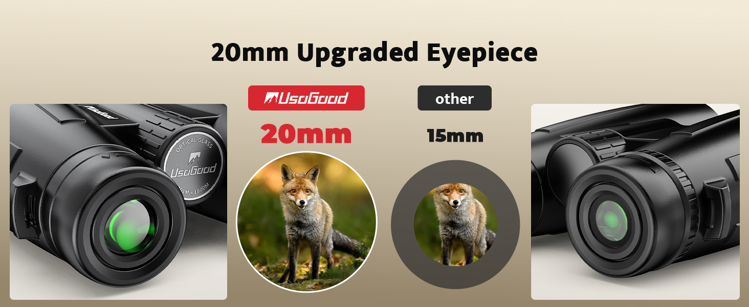 【15× High Power Magnification & 56mm Large Objective Lens】These usogood 15×56 binoculars for adults high power are designed for long-distance observation. The powerful 15× magnification combined with a large 56mm objective lens lets you capture crystal-clear and razor-sharp details even hundreds of meters away—whether it’s birds grooming their feathers, athletes in motion, or the outlines of wildlife. Equipped with BAK4 roof prisms and fully multi-coated lenses, these professional binoculars for adults deliver up to 90% light transmission, ensuring excellent brightness and color fidelity even in low-light environments. Perfect binoculars for bird watching and outdoor adventure.