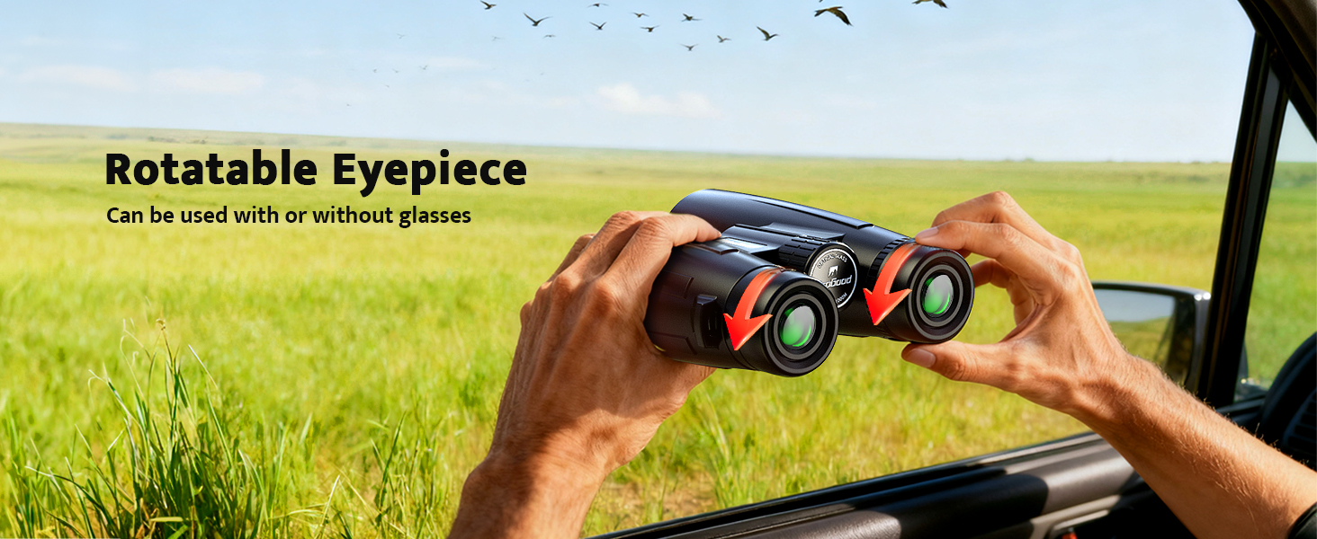 【Ergonomic Design for Comfortable Viewing】Featuring twist-up eyecups and a generous 20mm eye relief, these binoculars for adults offer comfortable viewing for both eyeglass and non-eyeglass wearers. The smooth and precise central focus wheel allows quick, accurate focusing with minimal effort. The non-slip rubber armor provides a firm, secure grip, ensuring stable handling even in rainy or cold weather—making long observation sessions more enjoyable.