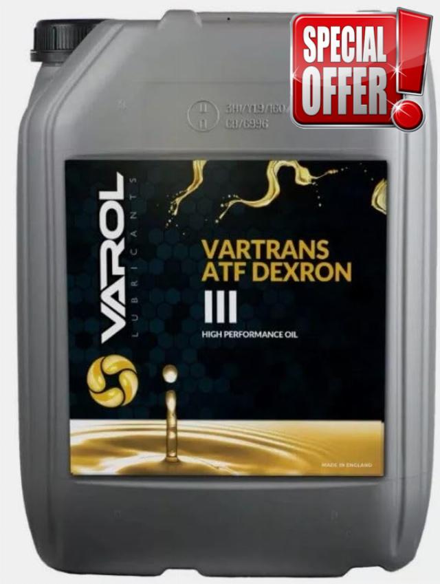 VARTRANS ATF DEXRON III is a multi-purpose automatic transmission fluid for commercial and passenger car gearboxes meeting a very wide range of specifications. The automatic transmission is one of the most complicated mechanisms in modern automotive engineering and consequently requires complex fluids for efficient operation. VARTRANS ATF DEXRON III is manufactured from premium synthetic base stocks and high quality solvent refined base oils with specially selected additives and friction modifiers to produce a lubricant with outstanding durability. It demonstrates excellent frictional stability and offers extended fluid life even when under the most severe conditions. Vartrans ATF Dexron III is recommended for automatic transmissions and power steering units in cars, vans, trucks, buses, agricultural and industrial machines where the following specifications are required.